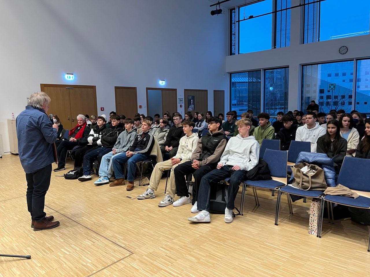 Am 24. Januar 2023 besuchte uns, die Schüler:innen der 9d und 10b, auf Initiative des ehemaligen Lehrers Franz Diehl und unserer Deutschlehrerin, Frau Reisinger, der Autor Reiner Engelmann im WBZ in Ingelheim.