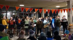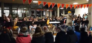 Es blieb spannend bis zum Schluss: Dürfen wir oder dürfen wir nicht spielen? Die Regeln änderten sich mal wieder von Tag zu Tag und dann waren auch noch alle „Saxophone“ in Quarantäne. Aber das viele und intensive Üben hat sich am Ende gelohnt. Bei eisigem Wind auf dem Schulhof konnten wir noch ein letztes Mal proben und dann ging es los.