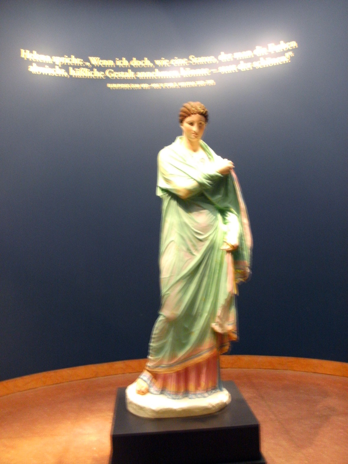 Ende des letzten Schuljahres, am 15. Juli 2021, durften wir, die Klasse 8c, mit Herrn Merklein und Herrn Schneider die Ausstellung „Bunte Götter – Golden Edition – Farben der Antike“ besuchen, die zu dieser Zeit in der Liebieghaus-Skulpturensammlung in Frankfurt ausgestellt war.