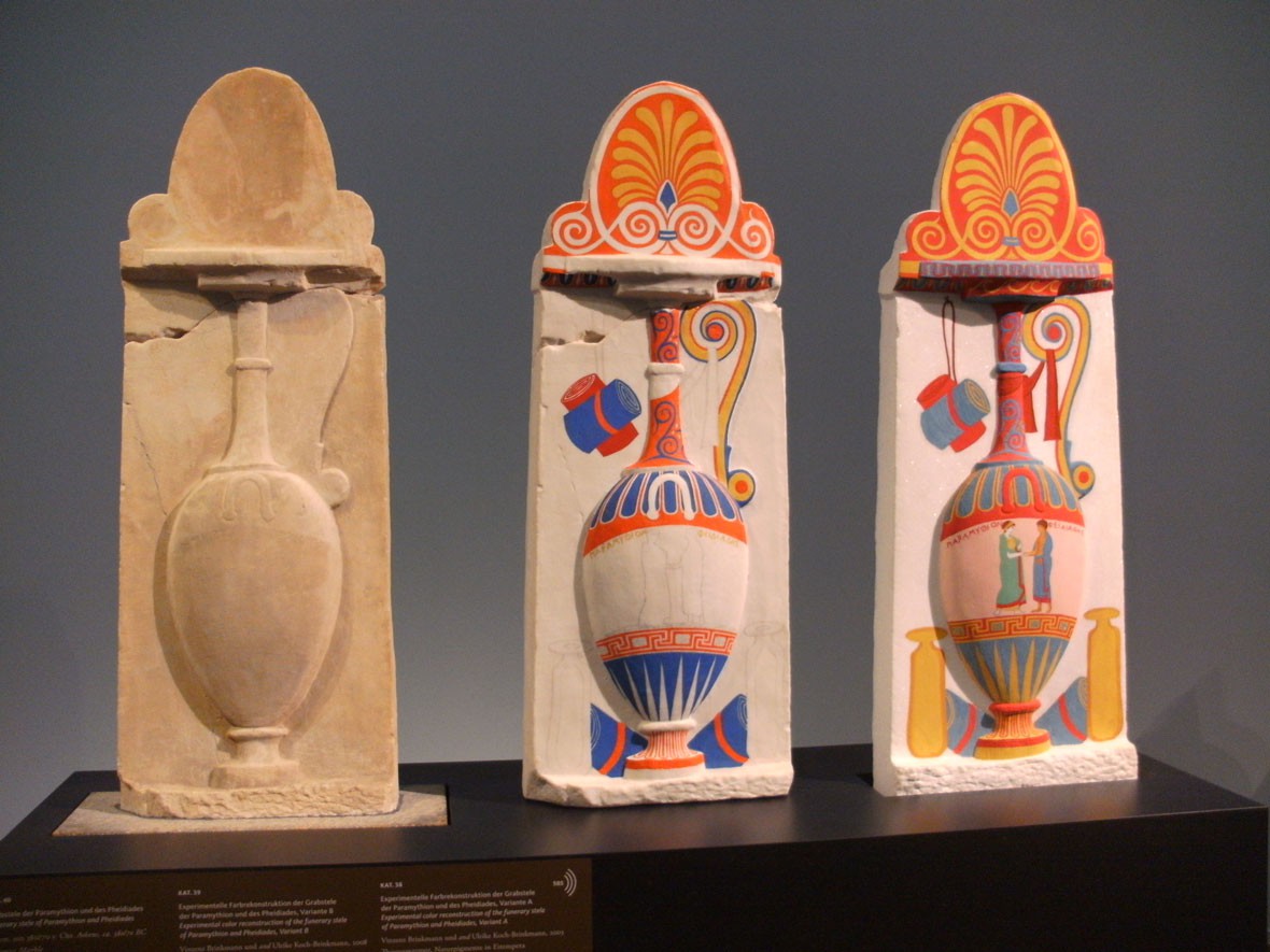 Die Farben der antiken griechischen und römischen Skulpturen begeistern schon seit einigen Jahren weltweit viele Menschen. Man hat nämlich herausgefunden, dass die plastischen Bildwerke gar nicht weiß, sondern bunt waren. Und diese bunten Farben hat man wiederhergestellt.