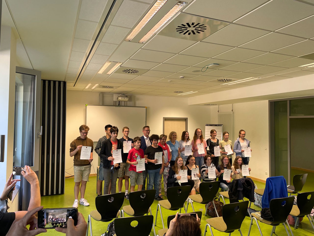 In der Schule war der Weg zu einem Warteraum ausgeschildert, in dem man mit Getränken und Keksen begrüßt wurde. Später kam eine Person von der Prüfungskommission und führte den Teilnehmenden zu dem Raum, in dem das Kolloquium stattfand. Die Prüfer waren sehr nett und haben mathematische Fragen/ Aufgaben gestellt, die innerhalb von 20 Minuten gelöst werden mussten. Nach der Prüfung hatte ich eine lange Pause, bis die Preisverleihung stattfand. Kurz vor der Preisverleihung wurde allen Teilnehmern noch interessante Mathe-Fakten vorgestellt. Insgesamt war es ein sehr ereignisreicher und spannender Tag.