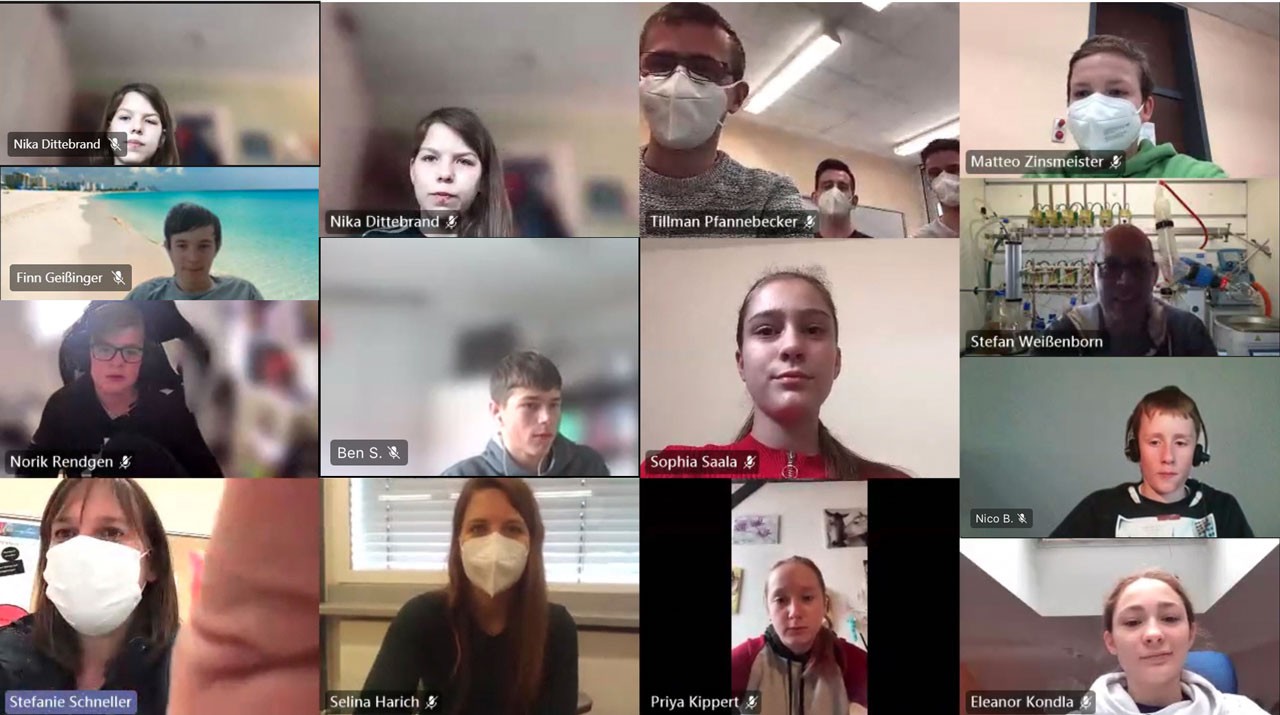 Auch Charlotte Güttler (7d) und Eleanor Kondla (8c) trugen der Jury aus Remagen ihren Wettbewerbsbeitrag vor. Sie erreichten einen tollen 3. Platz und können sich über 45 € und über einige Ideen zur Fortentwicklung ihres Algenöls freuen. Viele Gruppen hatten Videobeiträge eingereicht, die man sich im Verlauf des Tages anschauen konnte, so dass man sich, trotz Corona, einen Überblick über die Beiträge der anderen Gruppen verschaffen konnte. Aber dennoch machte sich etwas Enttäuschung bei den beiden erfahrenen Wettbewerbsteilnehmerinnen breit. Zitat Eleanor: „Der Aufwand hat sich für fünf Minuten Videokonferenz nicht gelohnt.“