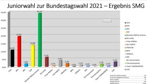 Wie bei der Bundestagswahl waren auch bei der Juniorwahl engagierte Wahlhelfer:innen aus der Oberstufe im Einsatz, die für den reibungslosen Ablauf der Wahl gesorgt und das Auszählen der Stimmen am Freitagnachmittag übernommen haben. Das Wahlergebnis am SMG lieferte sicherlich einige Überraschungen und war in der folgenden Woche Teil der Wahlanalysen und Diskussionen im Sozialkundeunterricht.