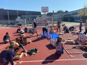 Dritter Tag: Am dritten Tag haben wir auf dem Schulhof eine riesige Stadt aus Holzklötzchen gebaut und verschiedene Klassenspiele gemacht. Zum Abschluss unserer Klassentage haben wir gemeinsam Pizza gegessen 😊.
