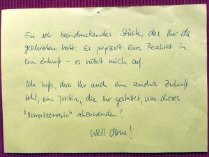 Hier einige Reaktionen aus dem Publikum: