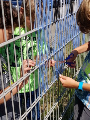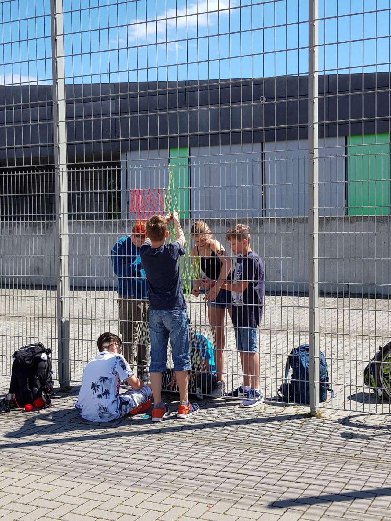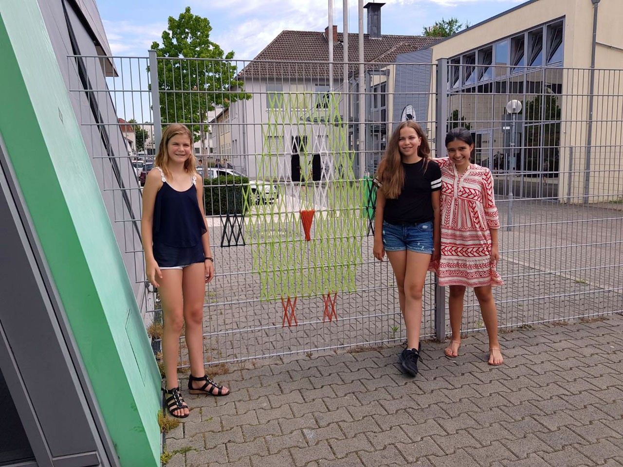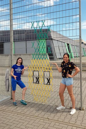 Auch in diesem Sommer gibt es neue Street Art auf dem Schulgelände: Die Klasse 8b entwickelte im Kunstunterricht bunte Entwürfe und brachte die sogenannte "Street Broderie" gemeinsam an.