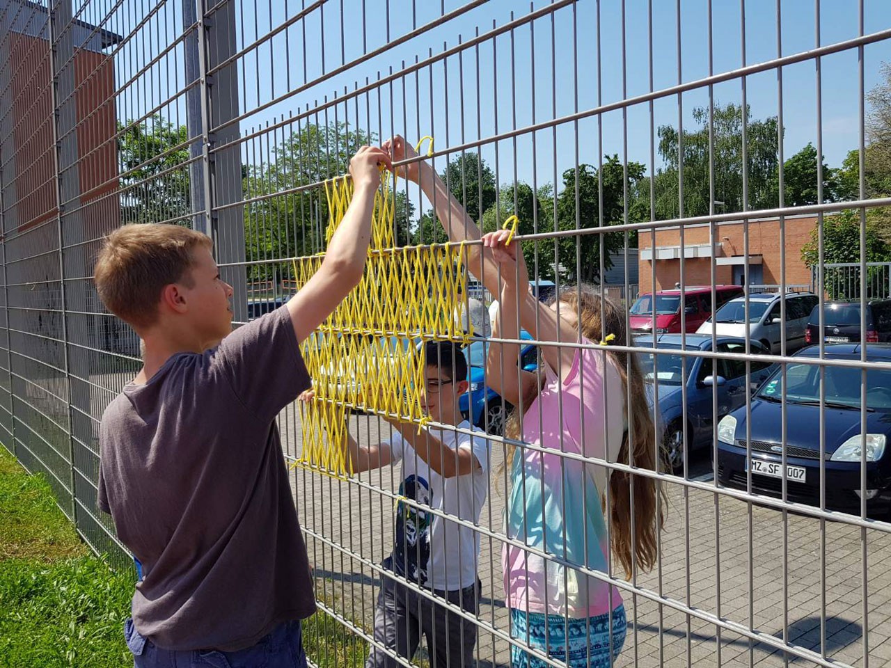 Pacman, Angry Bird und Co. trotzen nun seit einigen Wochen Wind und Wetter und verwandeln unseren Schulzaun in eine bunte Leinwand.